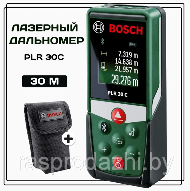 Лазерный дальномер BOSCH PLR 30 C — портативный прибор, предназначенный для быстрого выполнения линейных измерений.